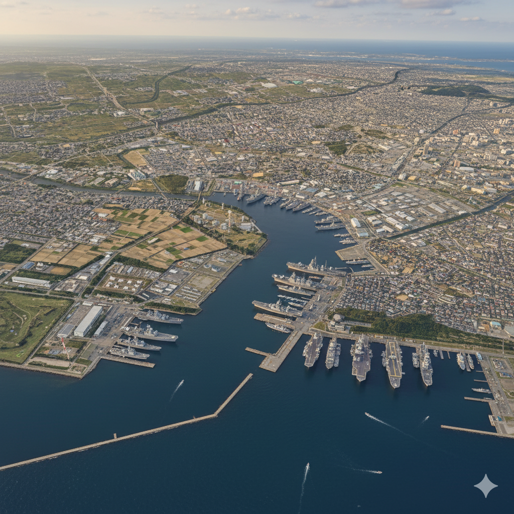 金沢港の地形を利用して金沢海軍基地を描いてみました。